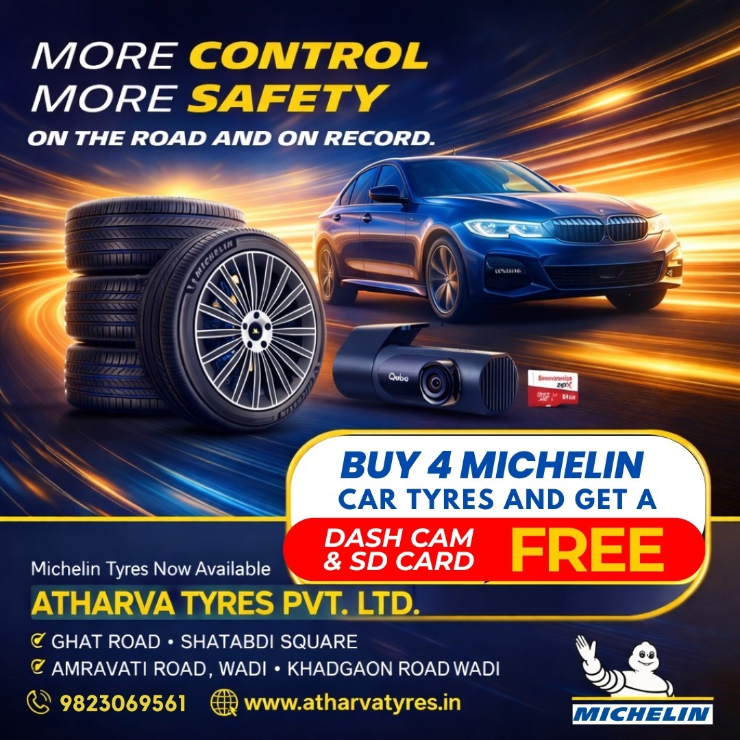 #AtharvaTyres #MichelinTyres #Buy4GetFree #DashCamFree #CarSafety #PremiumTyres #DriveWithConfidence #NagpurBusiness